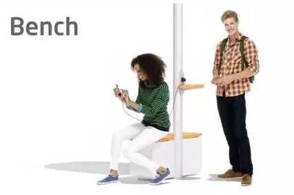 行人可以坐下休息,連接其提供的免費 wifi,或者利用 USB 接口給手機充充電。除此之外,它還有其他功能:檢測空氣質量、溫度、濕度。